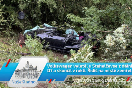 Volkswagen vyletěl u Stehelčevse z dálnice D7 a skončil v rokli. Řidič na místě zemřel