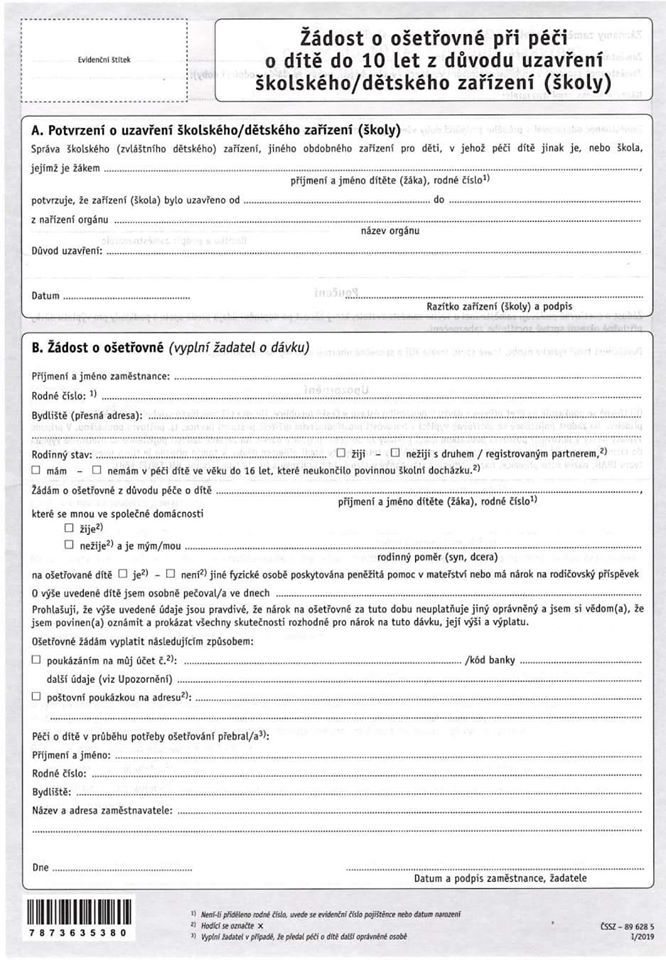 Tiskopis vystavuje výhradně školské/dětské zařízení (škola) v případě jejich uzavření z nařízení příslušného orgánu…
