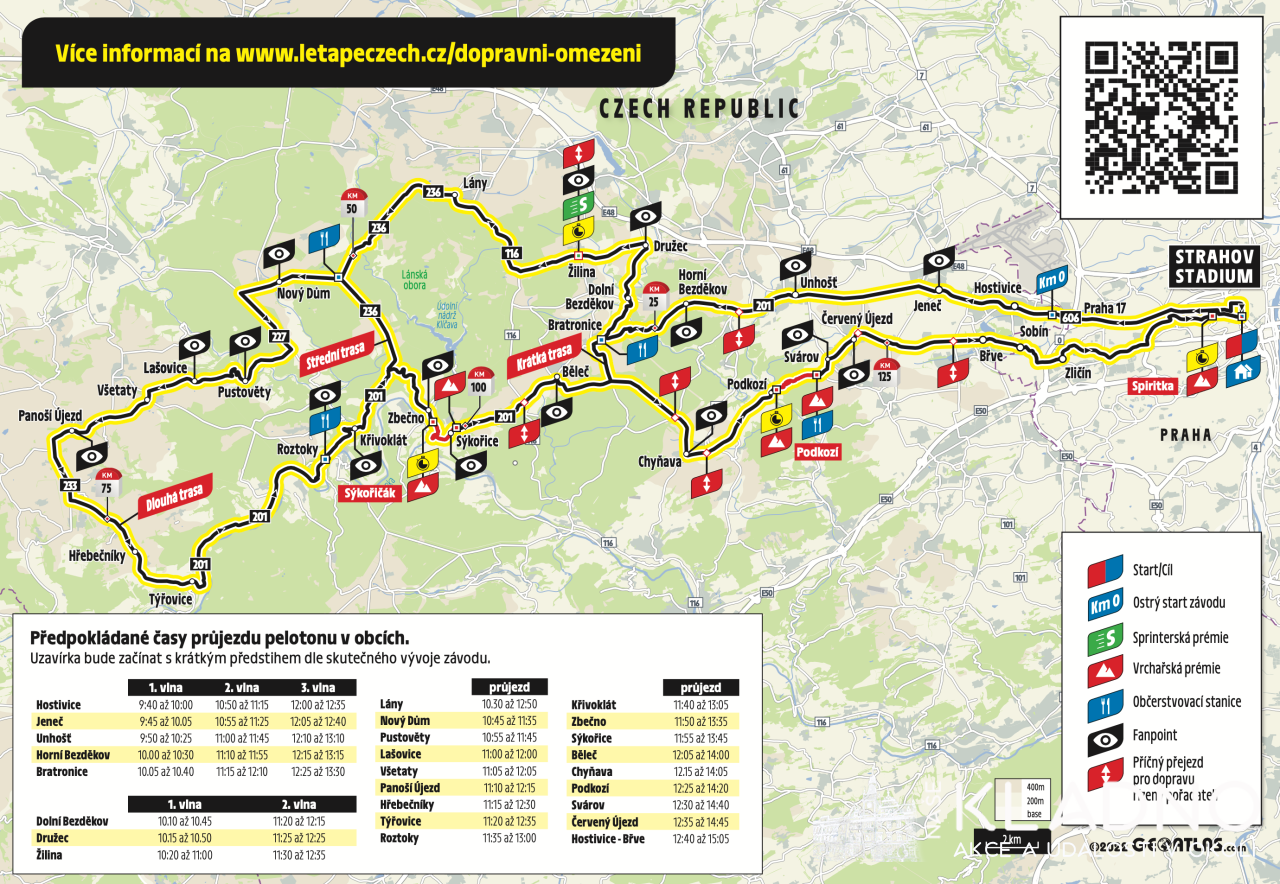 Trasa závodu a časy průjezdu