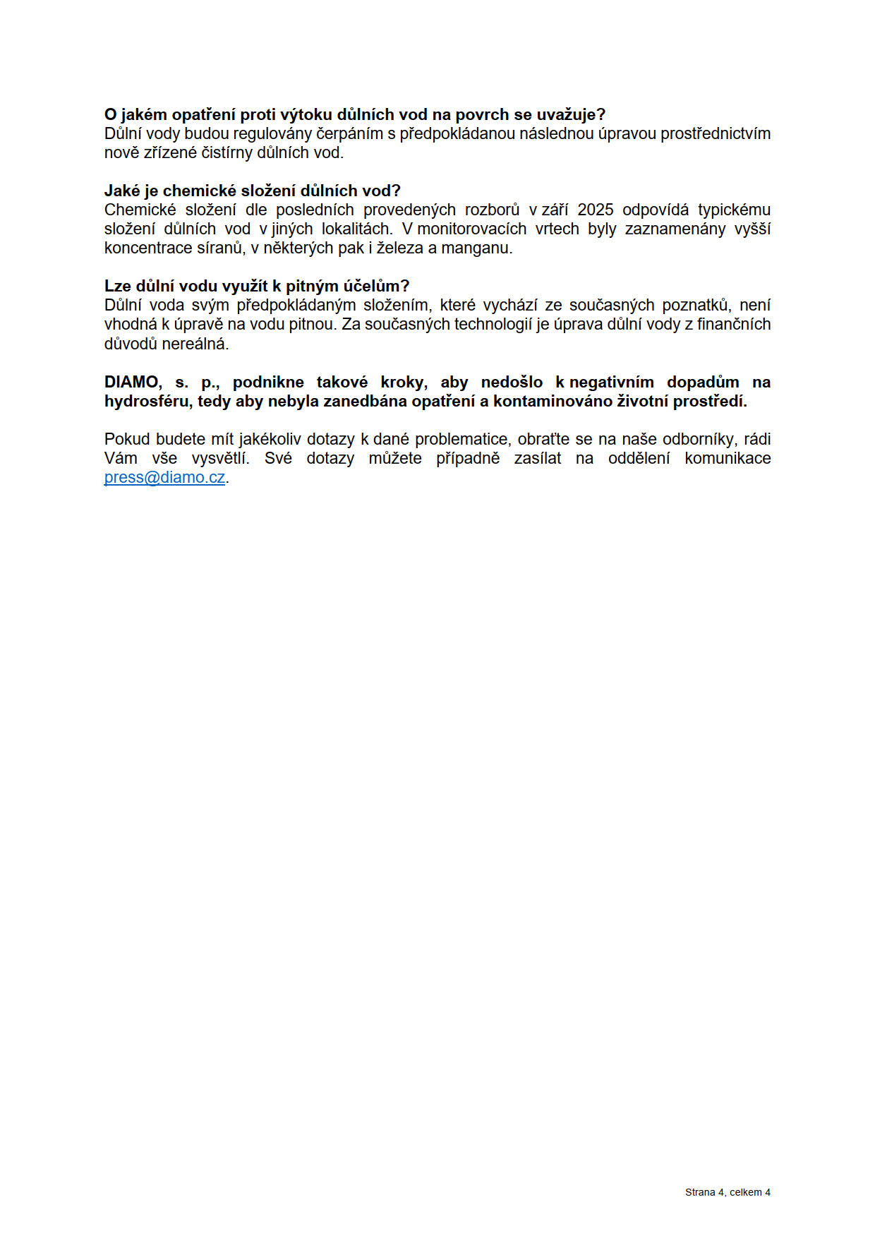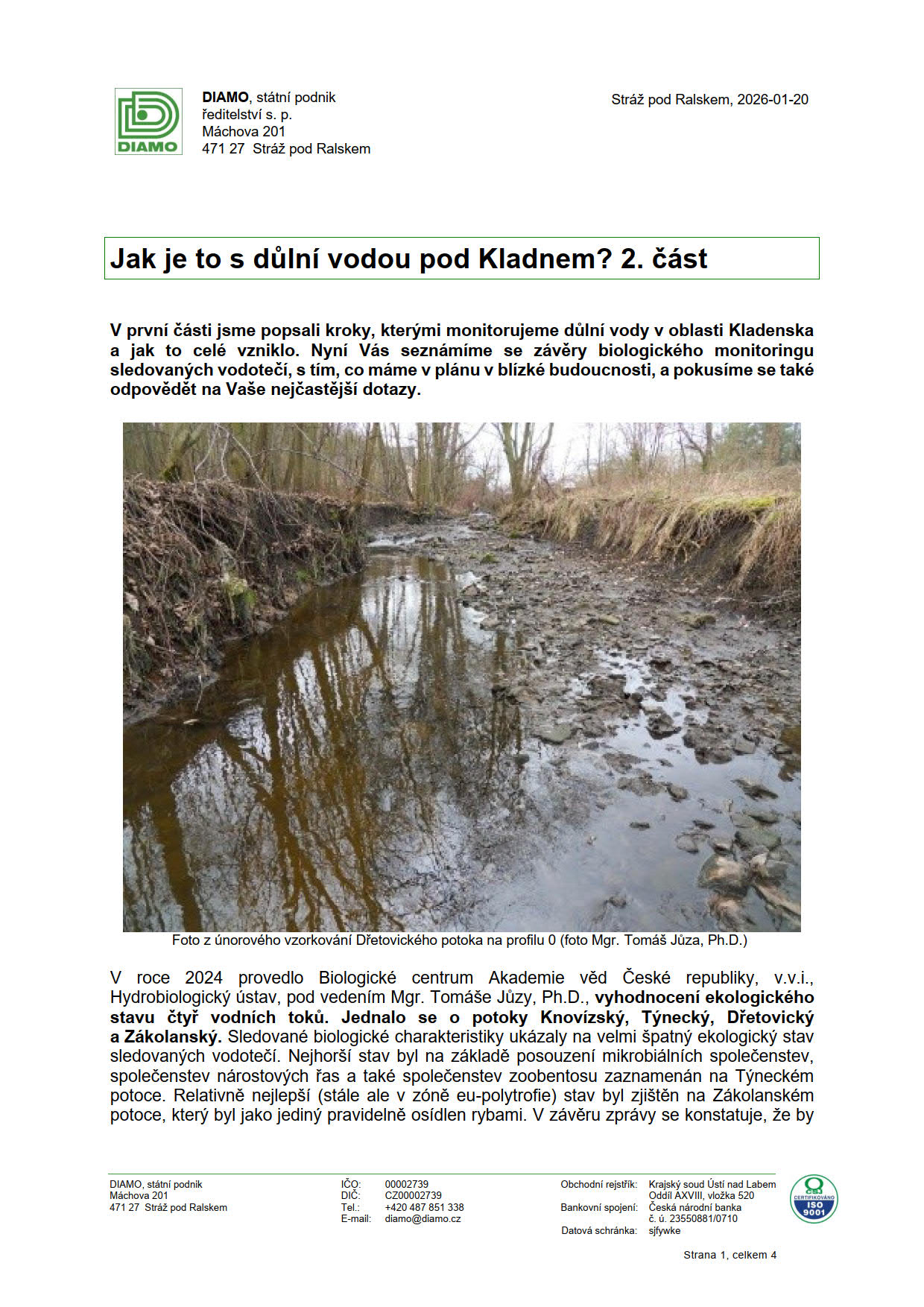 Autorka článků o otrávených důlních vodách pracuje většinou s několik desetiletí starými dokumenty, dává do souvislosti nesouvisejí či neaktuální věci a řadu si jich přimýšlí. Na upozornění DIAMA, že uveřejňuje chybné informace, se kterými se již pohybuje na hraně šíření poplašné zprávy, nereaguje. Je jen otázkou času, kdy někomu dojde trpělivost a zažaluje ji.