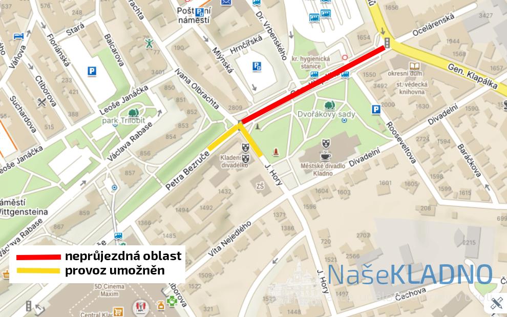 Ještě týden bude pokračovat rekonstukce ulice Gen. Klapálka, ale už nyní můžete odbočit z ulice Petra Bezruče do ulice J. Hory. V nejbližších dnech bude zprovozněn i průjezd do ulice Ivana Olbrachta.
