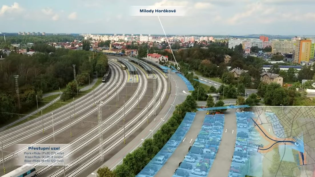 Součástí tohoto objektu je úprava přednádražního prostoru v ul. Milady Horákové. Jsou zde navrženy dvě autobusové zastávky. Délka zastávek je navržena 31 m, což odpovídá součtu délek kloubového a běžného autobusu s bezpečnostním odstupem 1 m. Podél ulice Milady Horákové je navrženo celkem 10 nových podélných parkovacích stání. Povrchová úprava komunikace v ul. Milady Horákové je navržena z asfaltového mastixového koberce. V rámci všech úprav budou provedeny i úpravy pro osoby s omezenou schopností pohybu a orientace.
