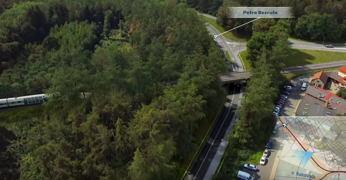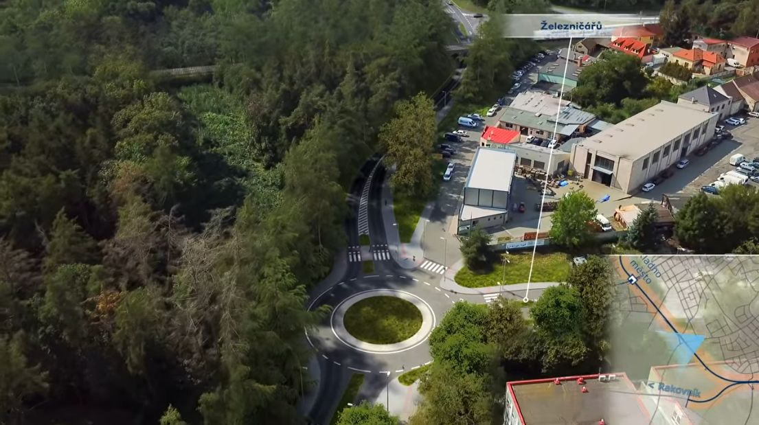 Ze stávající silnice III/2385 (ul. Petra Bezruče) odbočuje nově navržená komunikace pravostranným složeným obloukem, podchází trať v novém podjezdu a napojuje se levostranným obloukem do nově navržené pětiramenné okružní křižovatky.