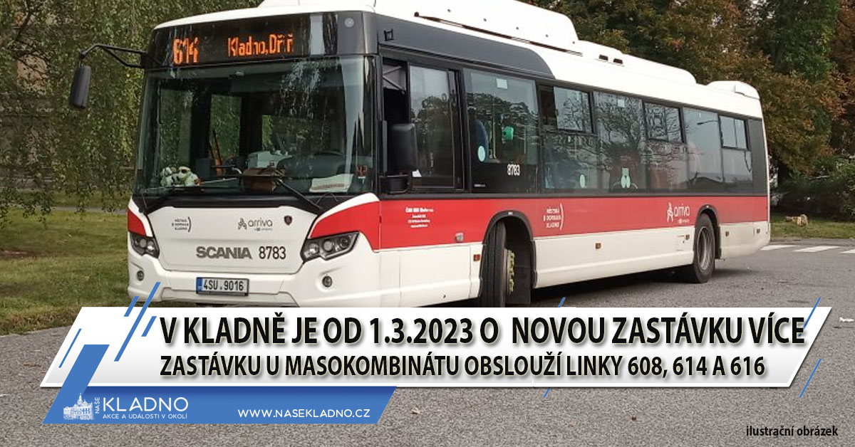 Provoz městské dopravy v Kladně bude od 1. března 2023 rozšířen o novou zastávku s názvem U Masokombinátu. Zastávka je umístěna v nové točně vybudované souběžně se stejnojmennou komunikací.