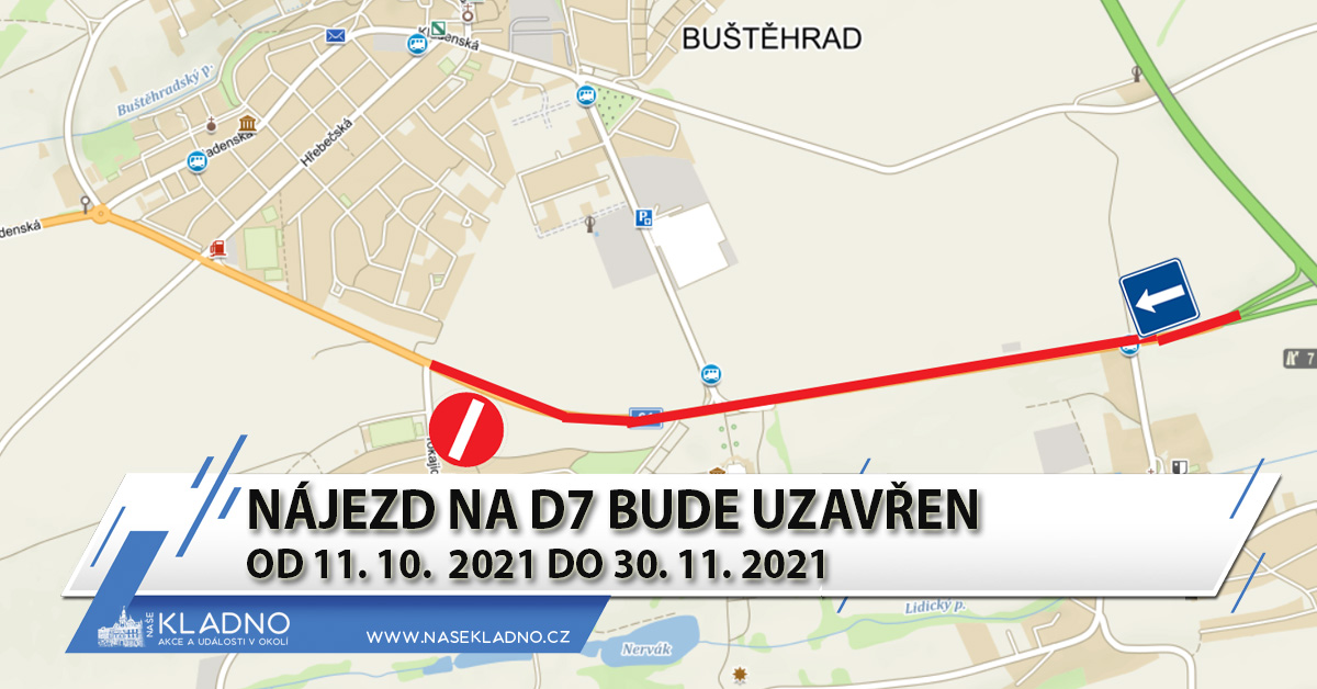 Ředitelství silnic a dálnic od 11. 10. 2021 uzavře na přibližně 6 týdnů nájezd na D7 směrem od Buštěhradu. Směr od dálnice bude doprava vedena jednosměrně.