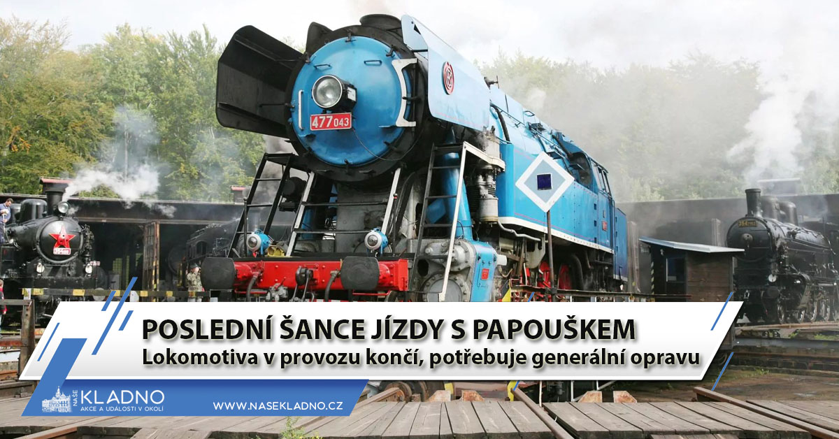 České dráhy vypraví v sobotu parní vlak z Lužné do Chomutova a zpět. Podívaná s vůní páry bude mít přitom pro příznivce železniční historie hořkou příchuť. Jde o na dlouho poslední příležitost vidět lokomotivu 477.043 (r. v. 1955, ČKD) přezdívanou Papoušek v pohybu vlastní silou. Lokomotiva totiž v provozu končí, potřebuje generální opravu.