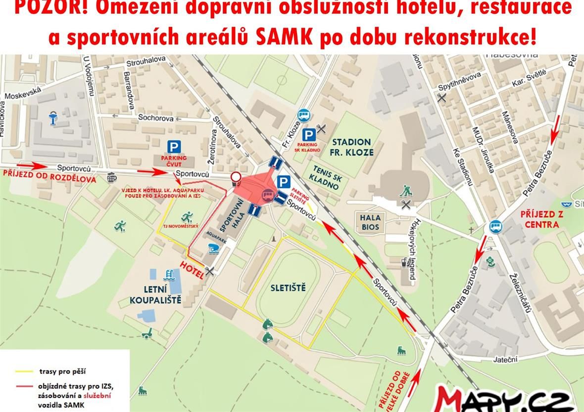 Od dnešního dne, tj. od 11. 8. 2022 bude uzavřena pro veškerou dopravu a chodce panelová cesta z ul. Sportovců mezi sportovní halou a TJ Novoměstský Kladno. Tato trasa byl hojně využívána pro vstup na Sletiště nyní v době, kdy je hlavní vchod na Sletiště uzavřen. Ostatní vchody na Sletiště zůstávají beze změny.