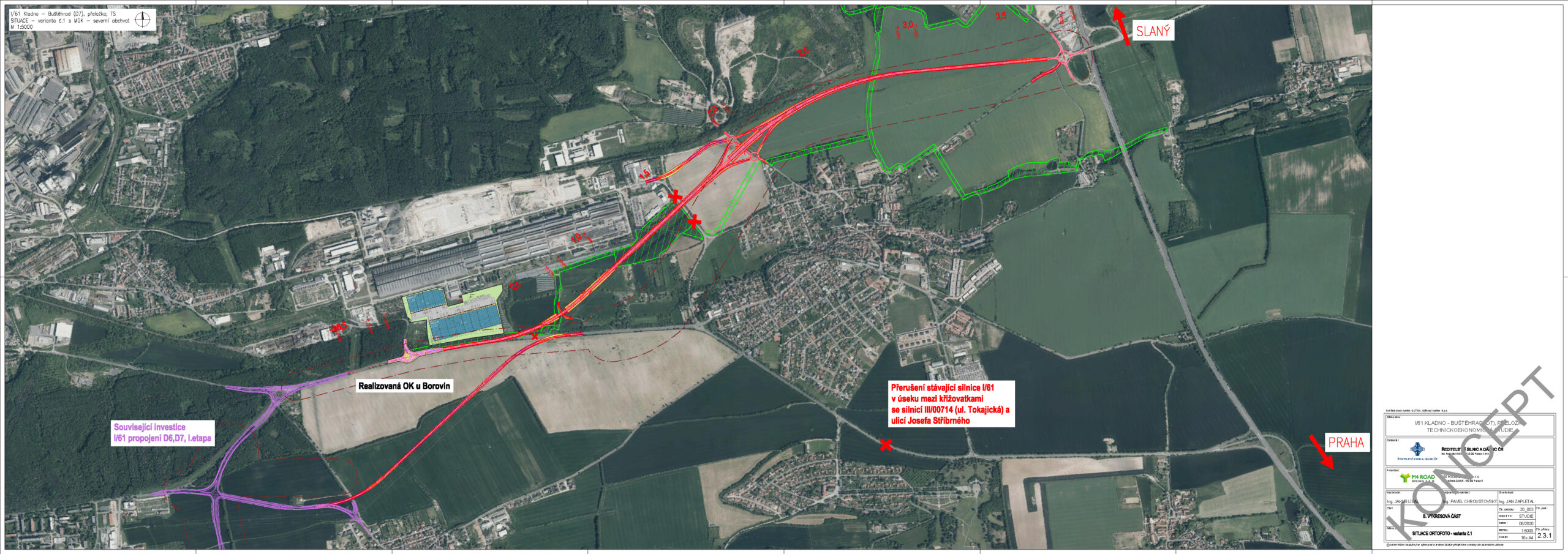 silnicí I/61, která je řešena v související investici ŘSD ČR (stavba „I/61 Kladno, obchvat“