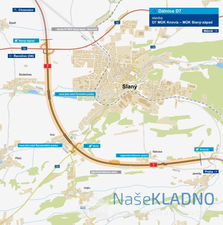 Záchranný archeologický výzkum pro úsek D7 MÚK Knovíz – MÚK Slaný-západ provede S-A-L_ sdružení pro ZAV pod vedením vedoucího účastníka sdružení společností Samson Praha. ŘSD se sdružením uzavřelo smlouvu za nabídkovou cenu 94,25 mil. Kč.