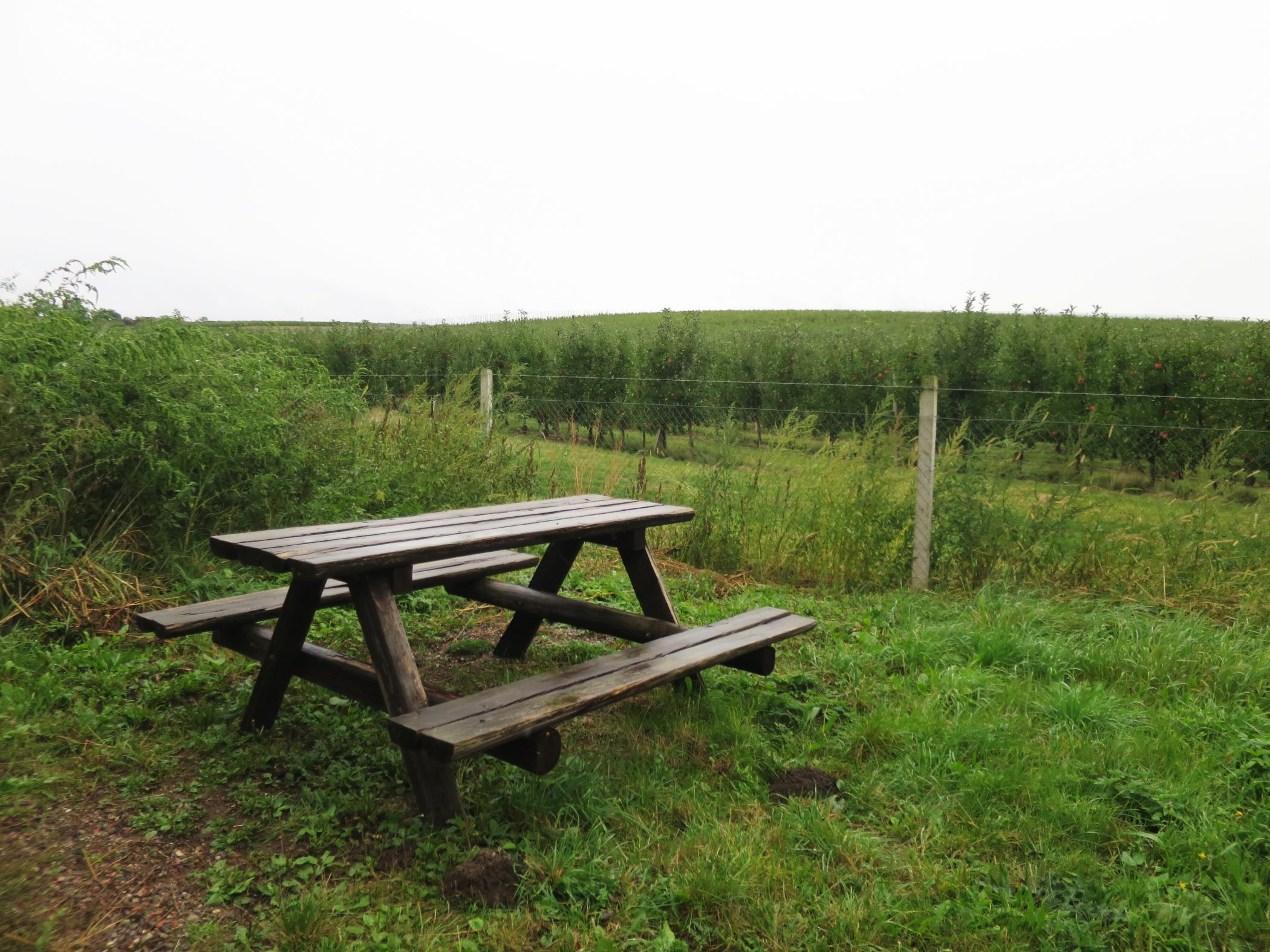 Cesta vede celou dobu podél plotu a cestou se můžete kochat rozkvetlými (pokud jdete v jarních měsících) jabloněmi a hrušněmi. Občas cesta mizí mezi stromy, takže i když pálí sluníčko je se občas kam schovat. Cesta Vás postupně dovede až k asfaltové silnici, kde odbočíte vpravo a pokračujete asi 100 m po silnici. Tady je odbočka do úzké cestičky, která vede mezi ploty a má ani ne dva metry na šířku, ale pohodlně průchozí. V tomto místě si můžete výlet trochu zkrátit a pokračovat po silnici necelý kilometr a poté odbočit doprava zpět mezi sady. Pokud jdete trasou tak jak je na mapce, tak odbočíte do oné úzké cestičky a pokračujete mírně z kopce mezi ovocnými sady.