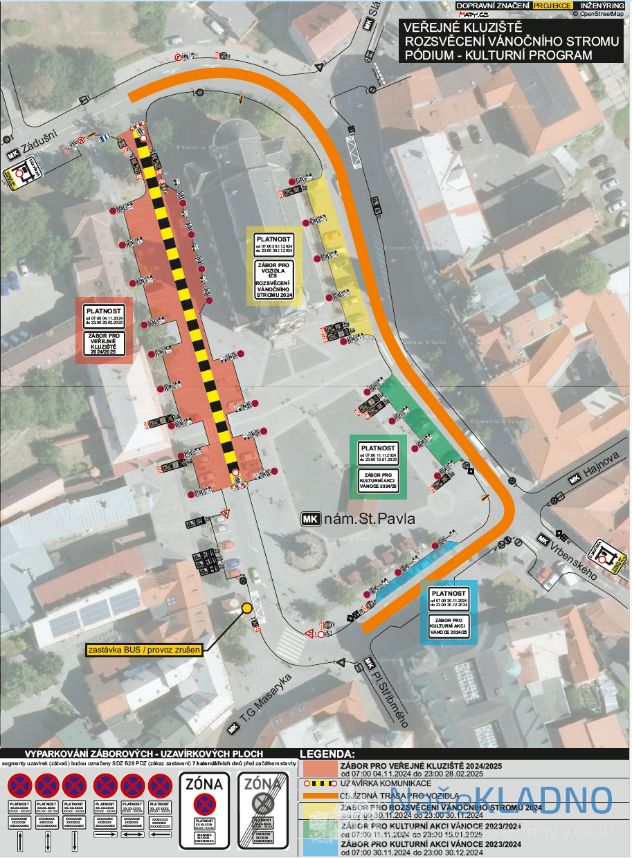 Od 4.11.2024 do 28.2.2025 bude uzavřena horní část nám. Starosty Pavla z důvodu umístění veřejného kluziště.