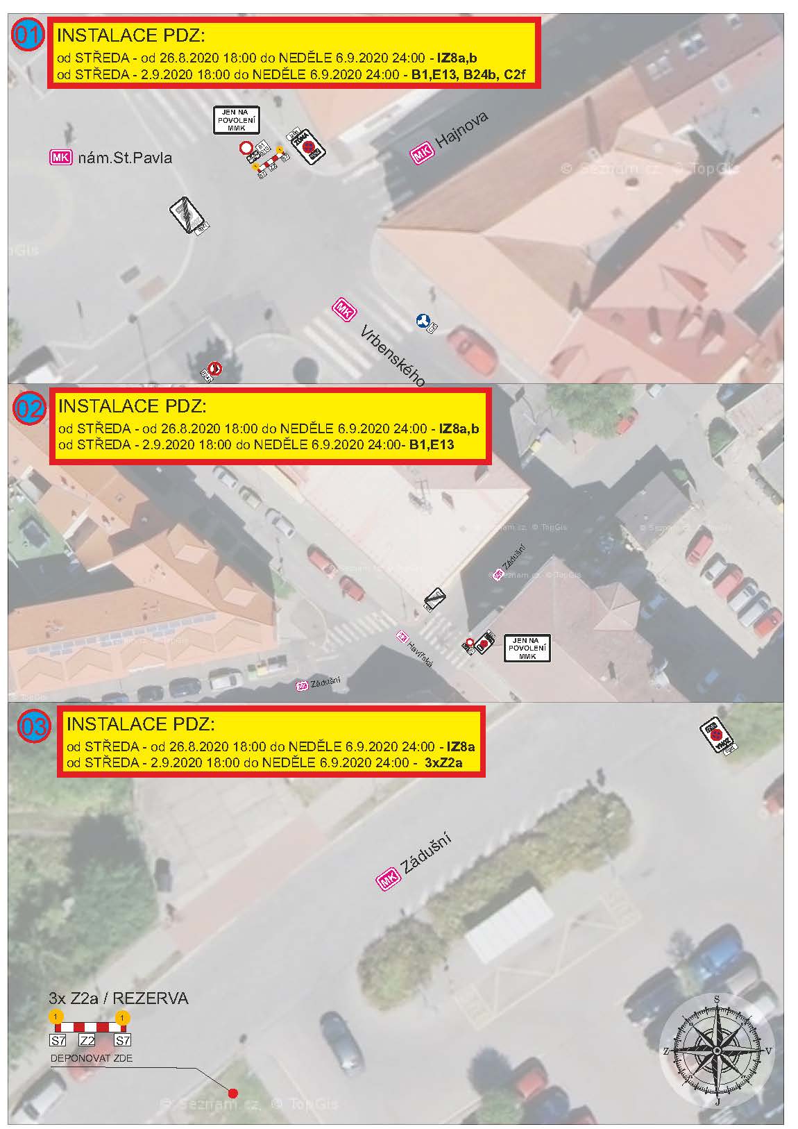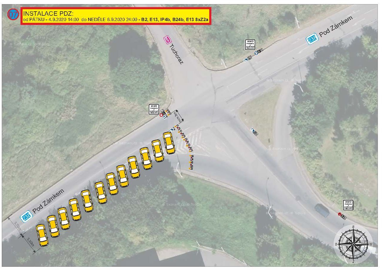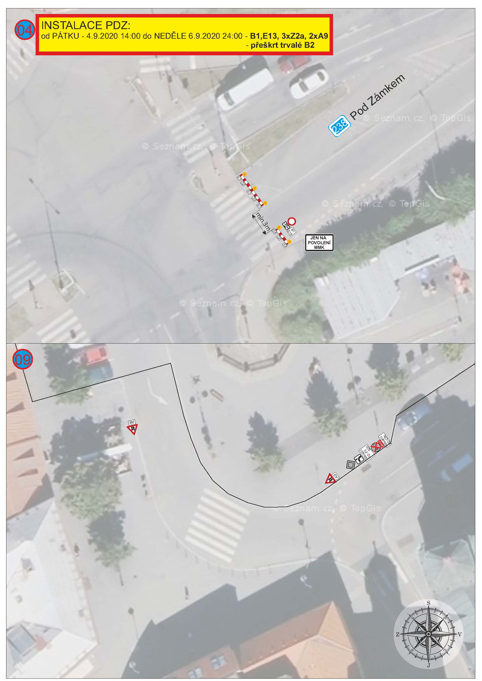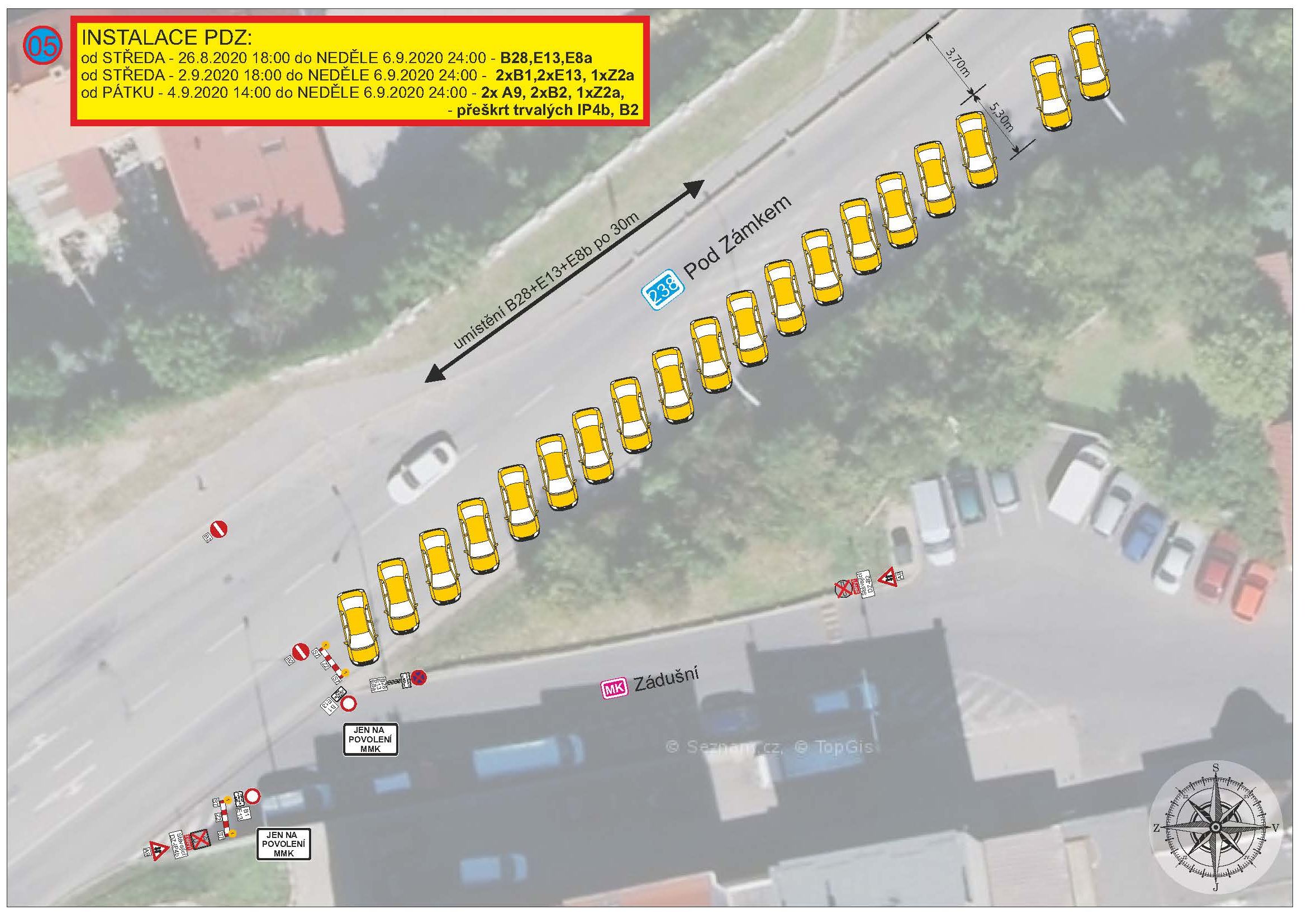Ulice Pod zámkem bude průjezdná jedním směrem od ul. Huťská směr ul. Čs.armády, opačný směr je veden po objízdné trase.