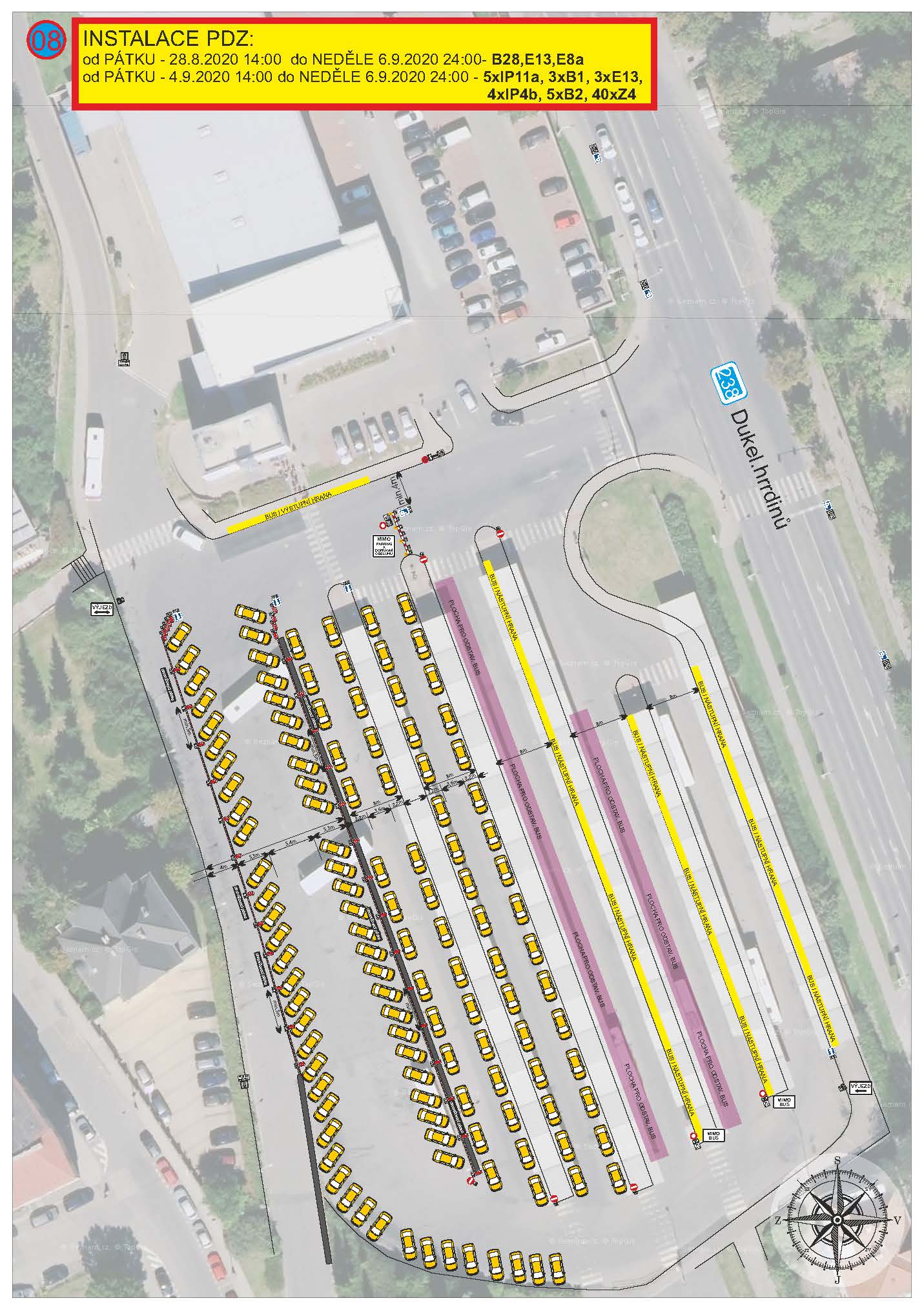 Manipulačně průjezd dočasným parkovištěm pro návštěvníky.