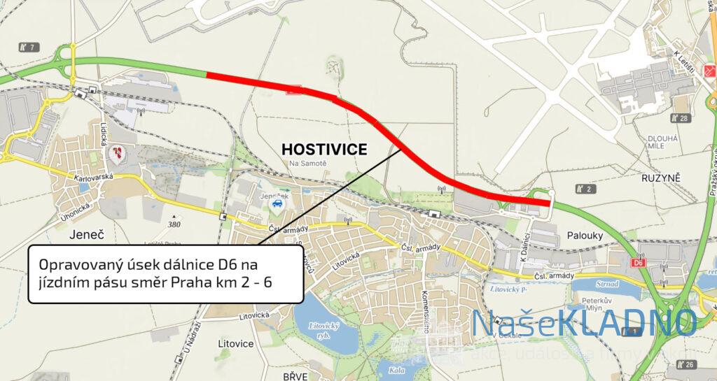 V neděli 20. července zahajuje ŘSD opravu tří kilometrů pravého jízdního pruhu jízdního pásu dálnice D6 směr Praha u Hostivic mezi 2. a 6. kilometrem. Opravu mají naplánovanou na 1 měsíc.
